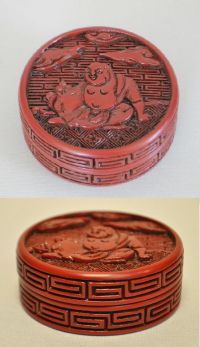 | 徳川美術館蔵 居布袋堆朱香合 15c明代 「銭鎮造」 |
